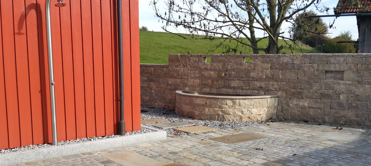 Brunnen und Gredplatten Mix Mauer und Brunnen aus Dolomit Rebmauerwerk, Gredplatten aus Granit gemischt mit Groß- und Kleinsteinpflaster aus Granit info@thalmeier-galabau.de2017-01-12T09:32:33+01:00 Share This Story, Choose Your Platform! FacebookXRedditLinkedInTumblrPinterestVkE-Mail